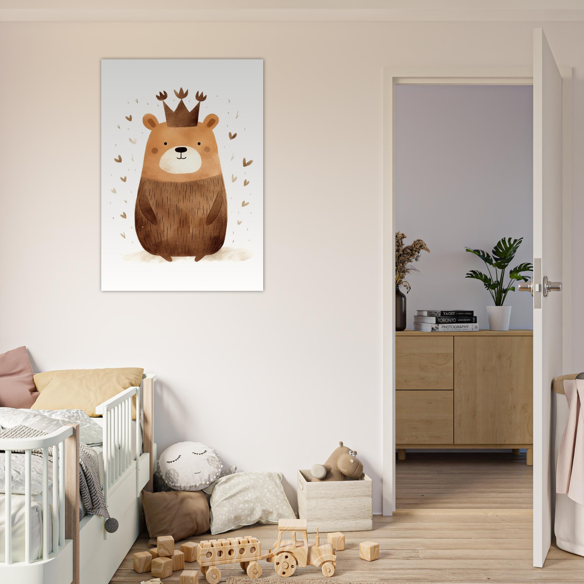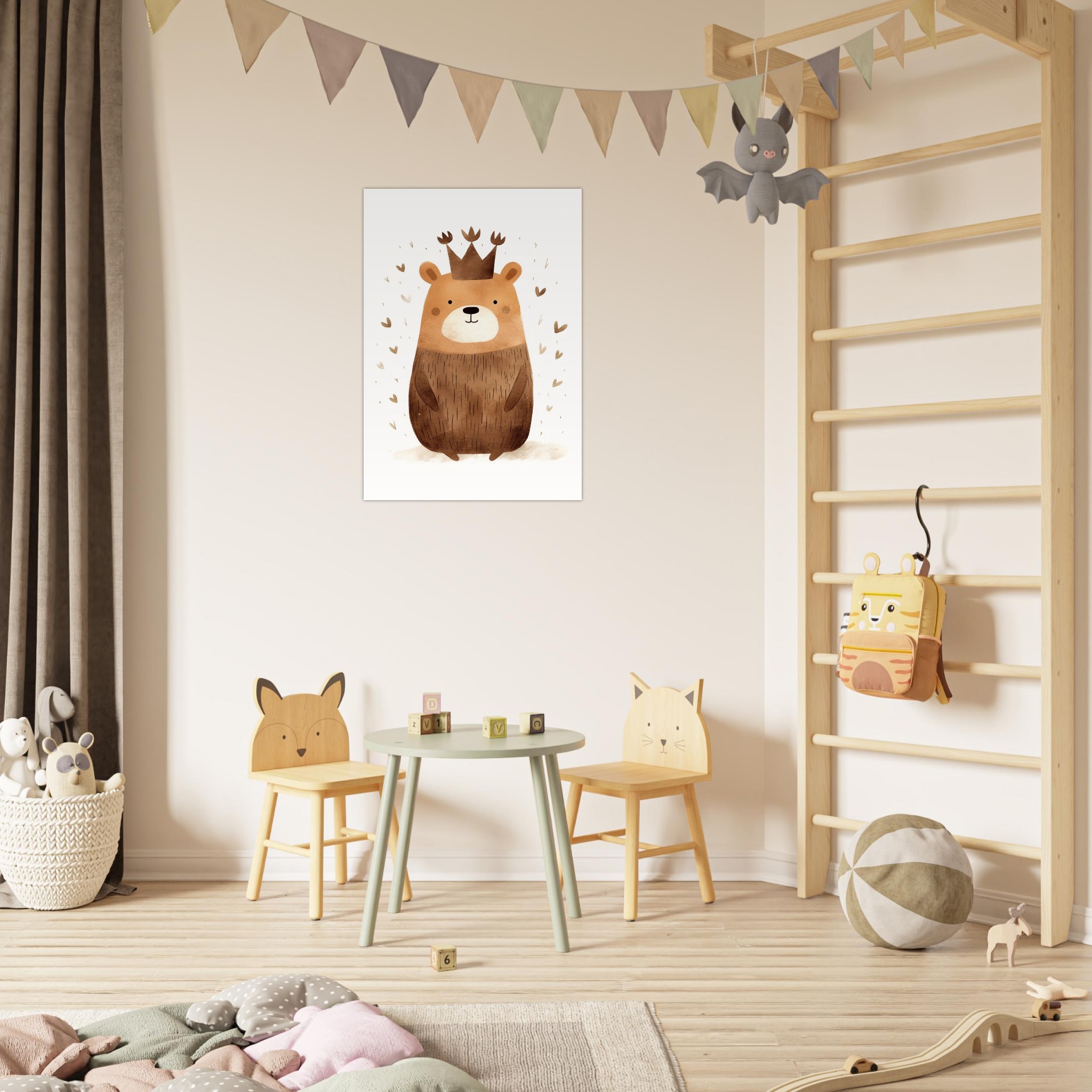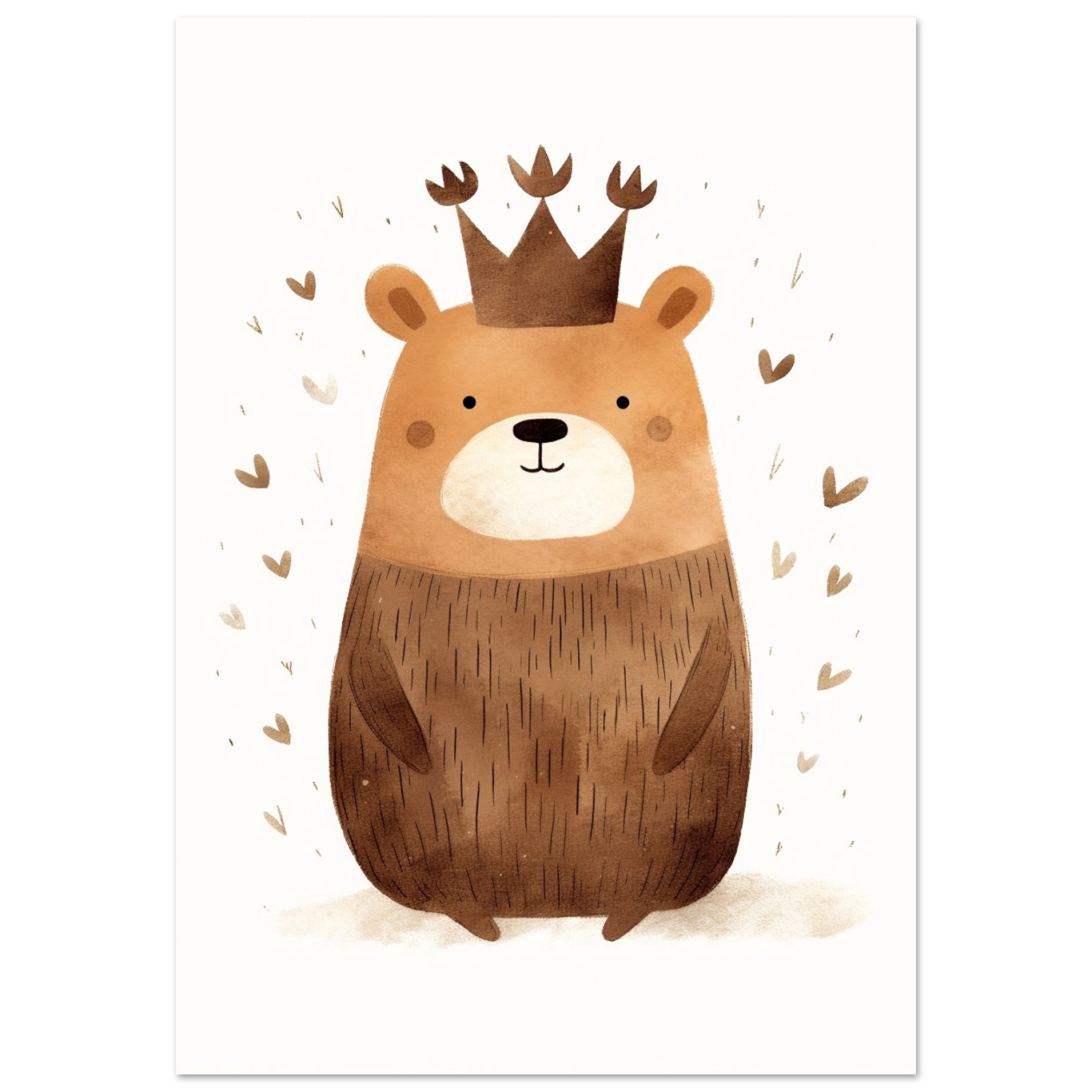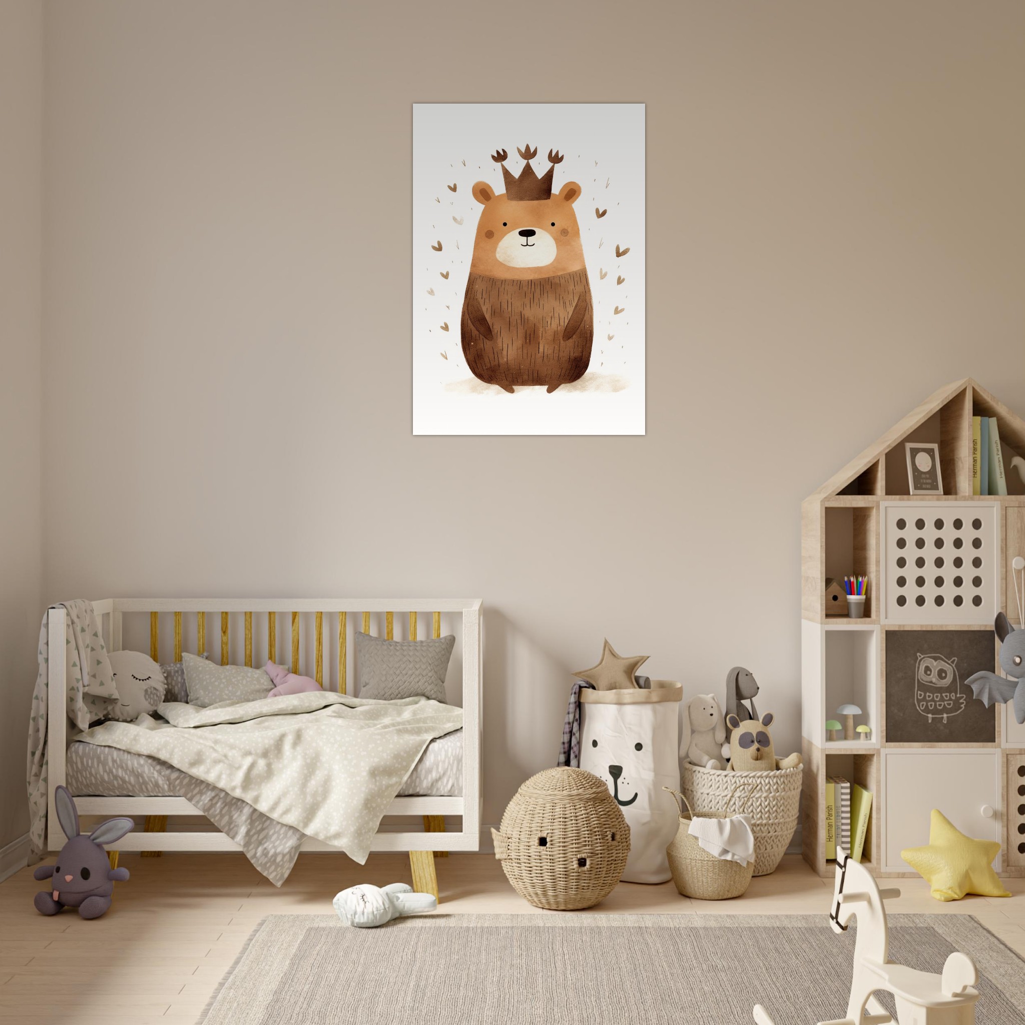 Voeg een vleugje speelsheid toe aan de kinderkamer met de ‘Beer met kroon’ poster, verkrijgbaar via onze Kinderkamer Posters collectie. Deze schattige poster toont een beer met een koninklijke kroon, perfect om de verbeelding van je kleintje te prikkelen. Met levendige kleuren en een charmant ontwerp zal deze poster zeker een glimlach toveren op het gezicht van je kind. Of het nu boven het bedje hangt of als onderdeel van een galerijmuur, de ‘Beer met kroon’ poster voegt een vleugje magie toe aan de kinderkamer.