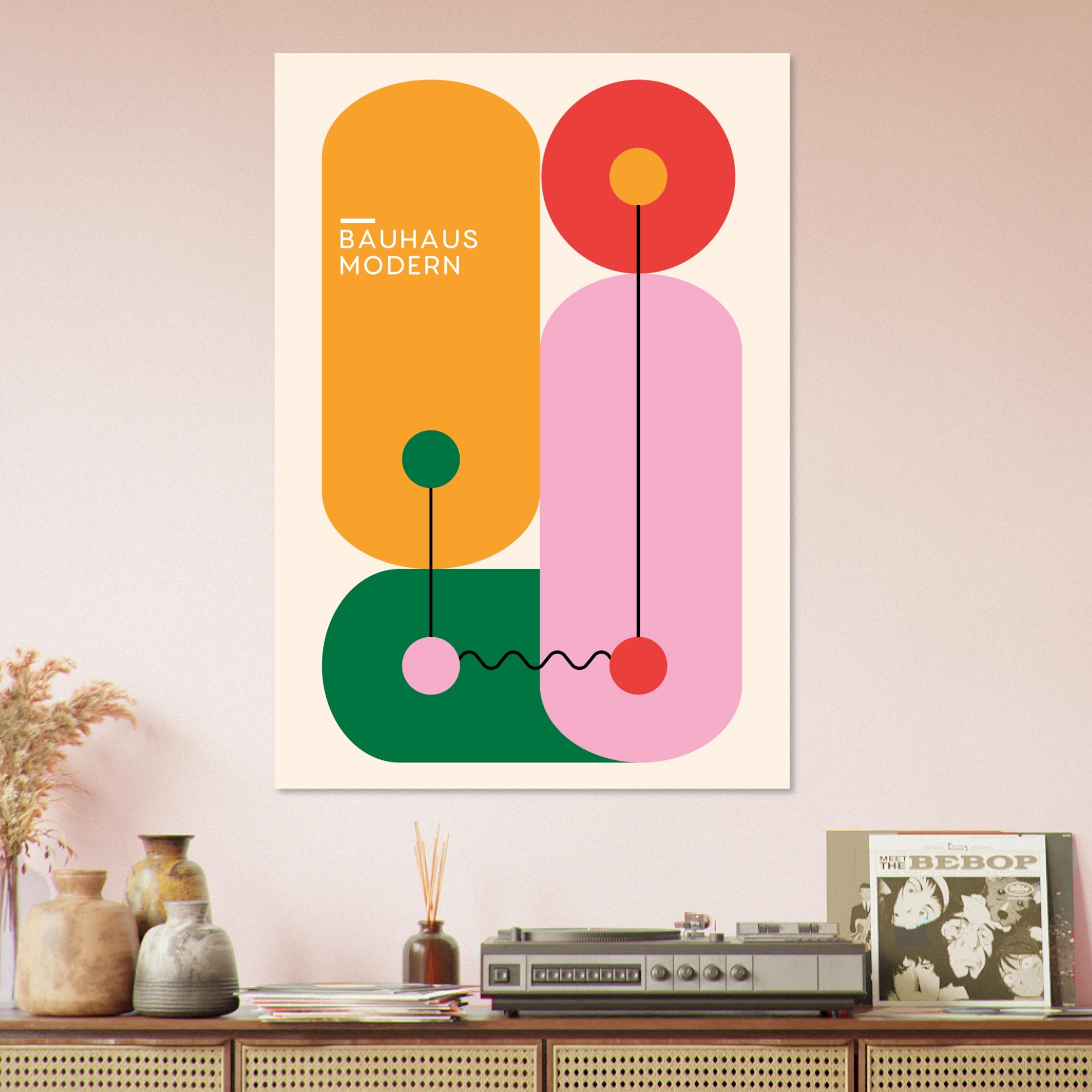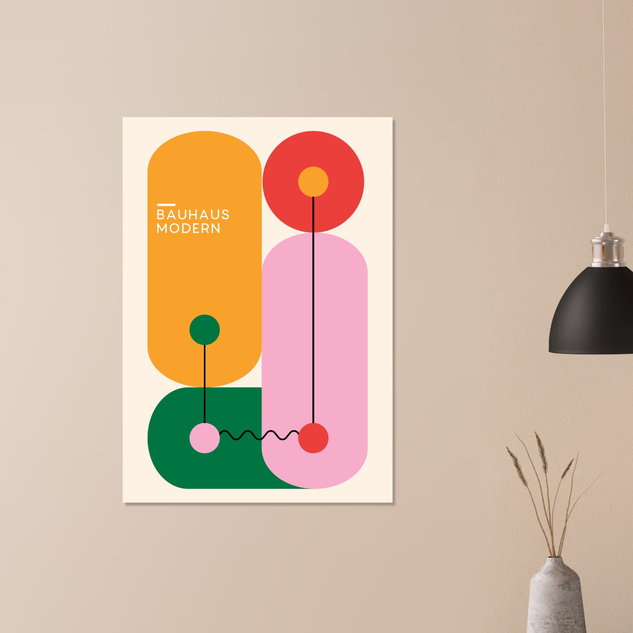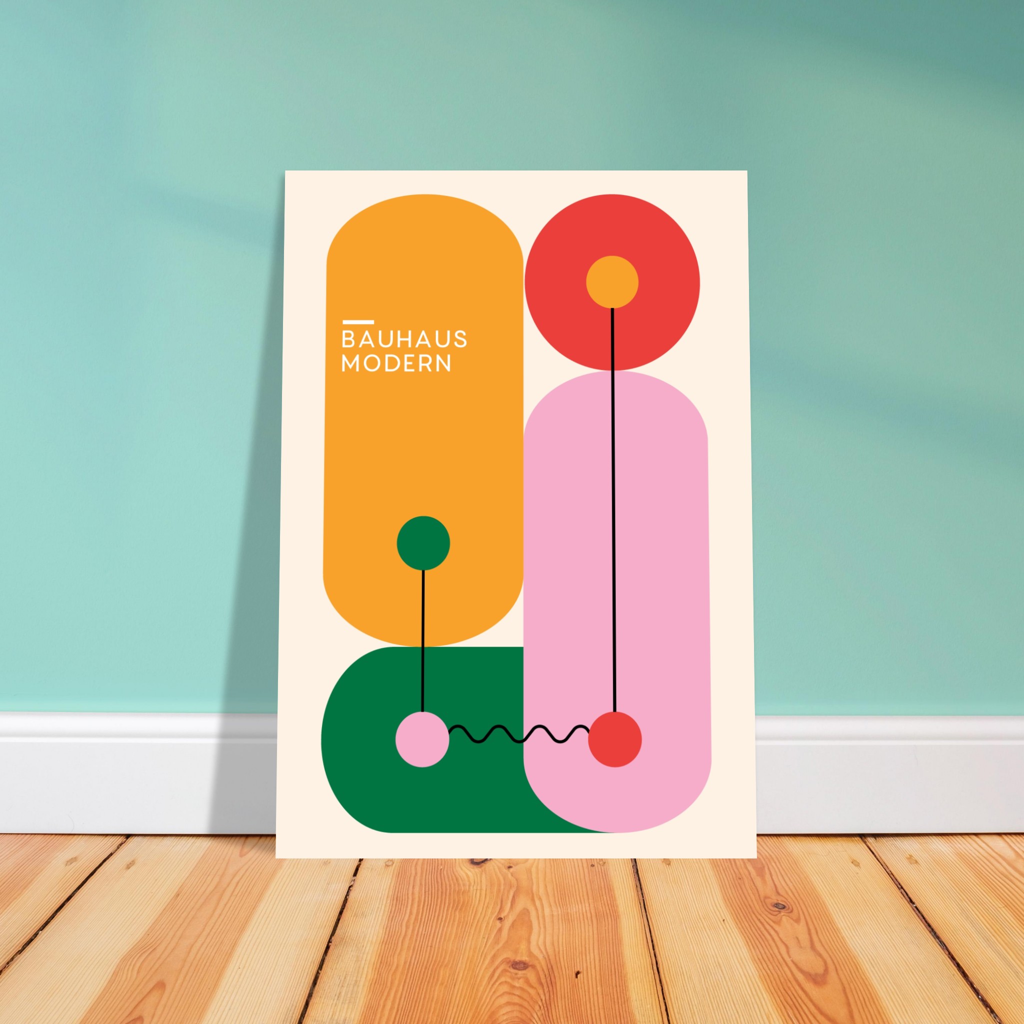 Voeg een vleugje modernistische elegantie toe aan je interieur met ‘Bauhaus – Modern Art’, een artistieke expressie uit de toonaangevende Bauhaus collectie. Deze poster, die de strakke lijnen en de abstracte vormen van de Bauhaus-stijl omarmt, belichaamt de tijdloze invloed van deze revolutionaire kunst- en designbeweging. Het minimalistische en toch dynamische ontwerp maakt ‘Modern Art’ tot een perfecte aanvulling voor elke ruimte, en biedt een subtiele maar krachtige uiting van de modernistische esthetiek die het Bauhaus wereldwijd bekend heeft gemaakt.