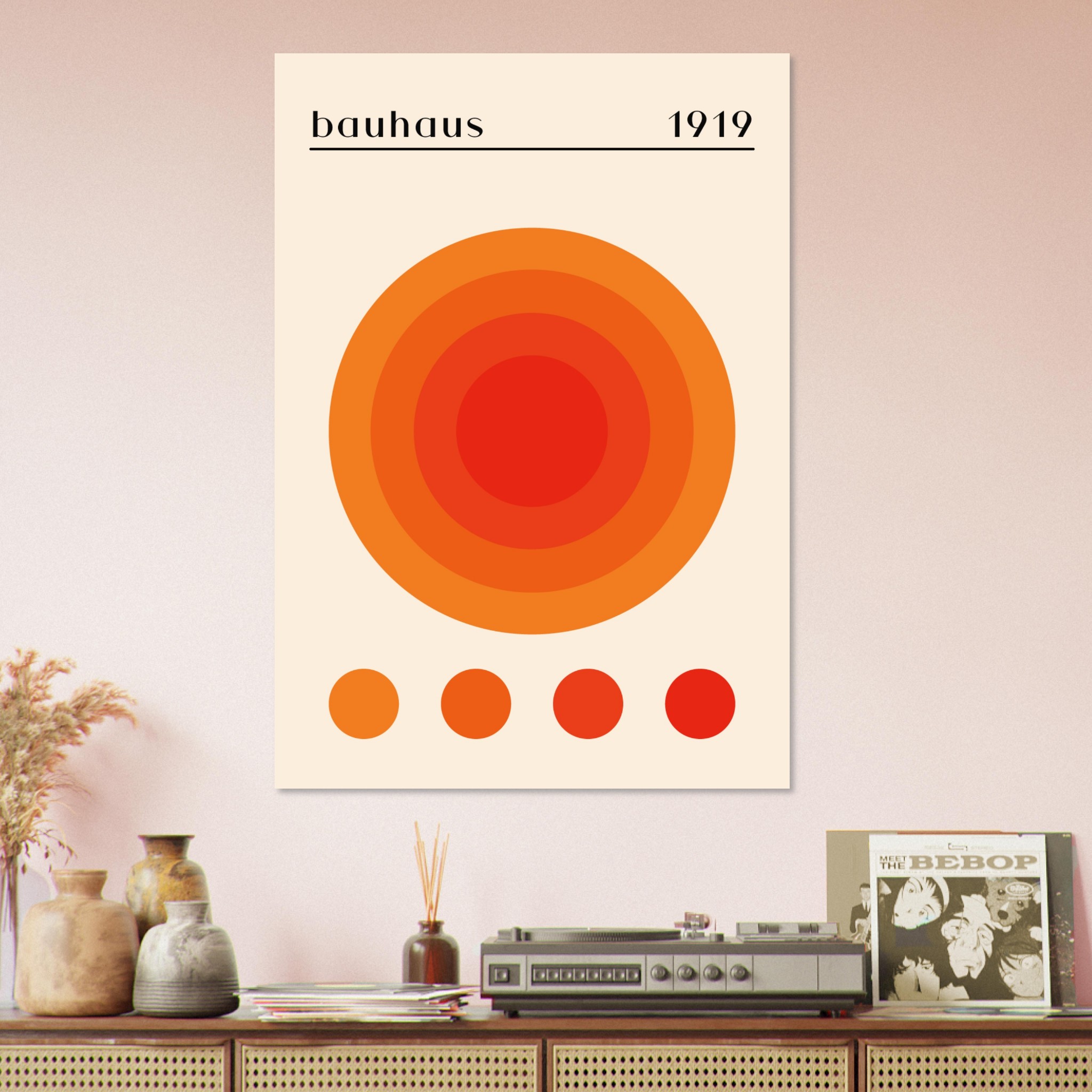 Voeg een vleugje levendige moderniteit toe aan je muur met ‘Bauhaus – Orange Dot’, een poster die de essentie van de Bauhaus stijl vastlegt. Beschikbaar in de Bauhaus collectie, deze poster combineert het minimalistische design met een opvallende oranje stip, waardoor het een gedurfde en toch elegante toevoeging aan elke ruimte is. ‘Orange Dot’ belichaamt de Bauhaus-principes van eenvoud en functionaliteit in design, terwijl het ook een speelse en kleurrijke toets aan je interieur geeft. Perfect voor kunstliefhebbers en designenthousiasten die een stijlvol, hedendaags statement willen maken.
