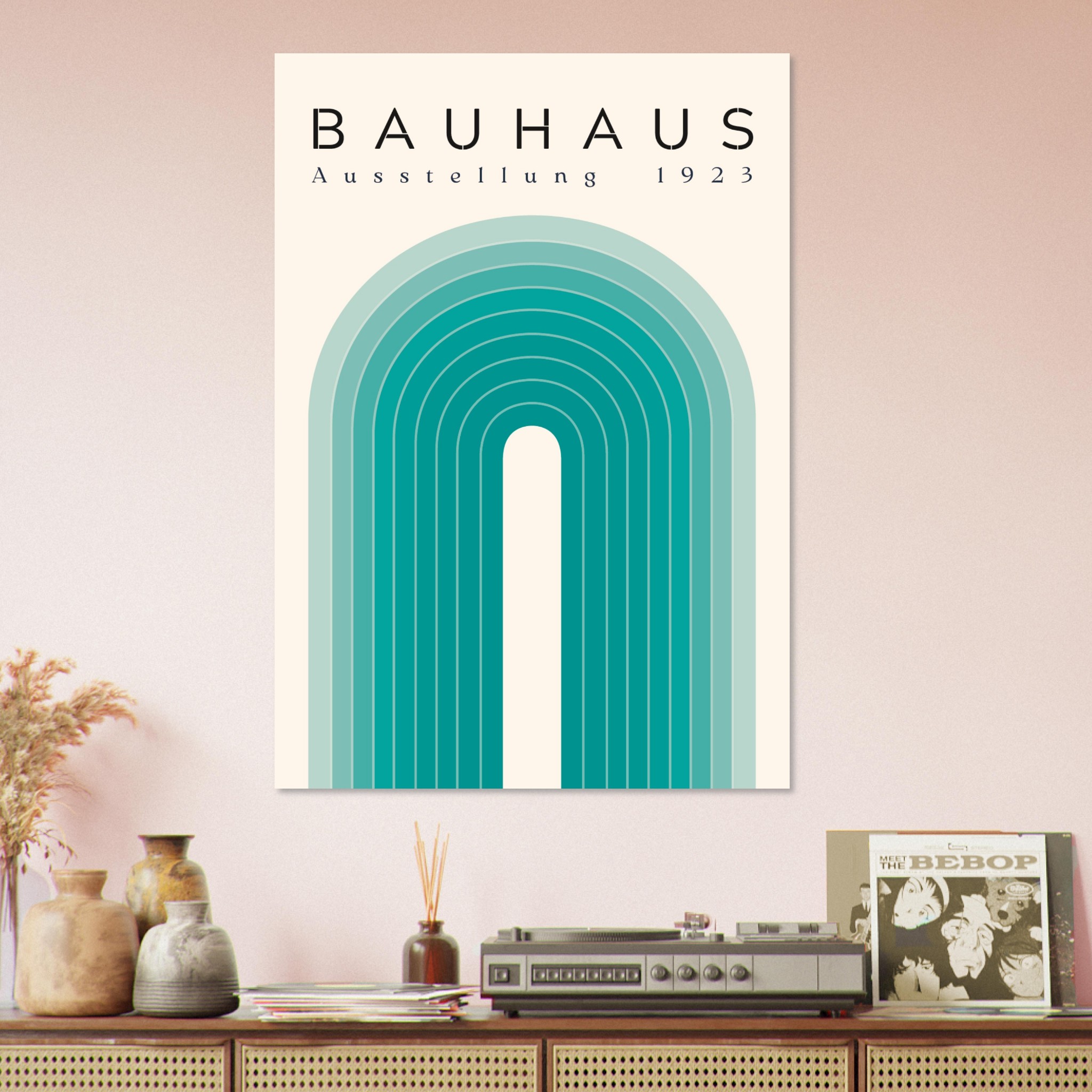 Voeg een vleugje kleur en modernisme toe aan je muur met ‘Bauhaus – Turquoise Rainbow’, een levendige en eigentijdse interpretatie van de Bauhaus stijl. Deze poster, beschikbaar via de Bauhaus collectie, combineert zachte turquoise tinten met de kenmerkende geometrische vormen van de Bauhaus-beweging. ‘Turquoise Rainbow’ is een moderne twist op de klassieke Bauhaus-esthetiek, ideaal voor iedereen die op zoek is naar een frisse en stijlvolle toevoeging aan hun interieur. Met zijn speelse kleuren en strakke lijnen, brengt deze poster een vleugje kunsthistorie in een moderne context.