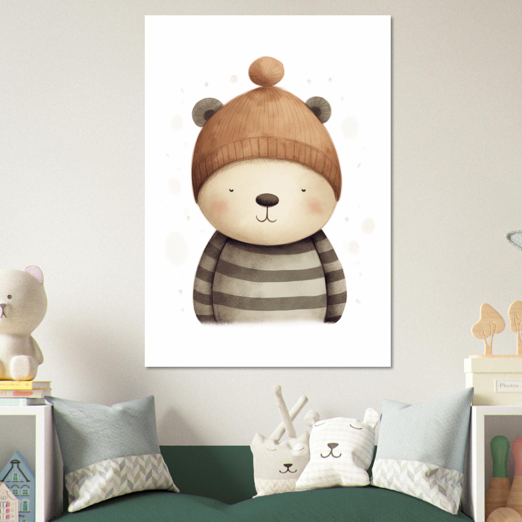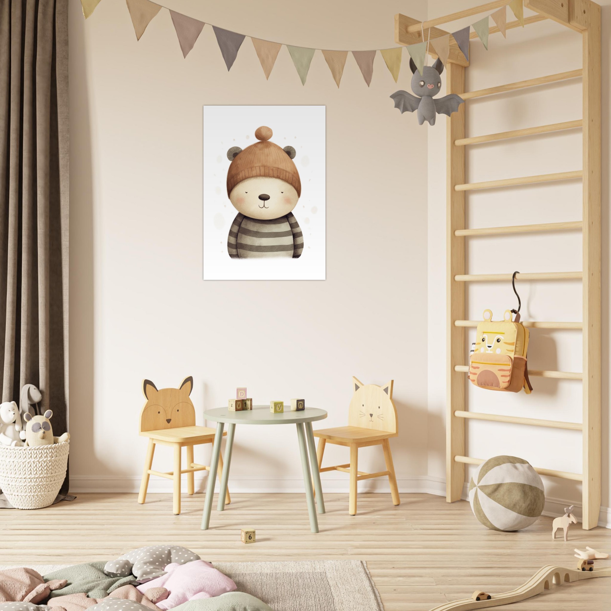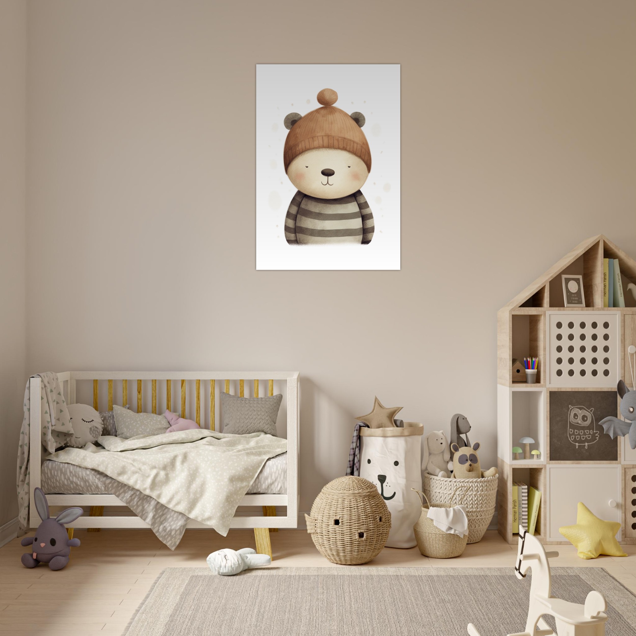 Breng een dosis schattigheid naar de kinderkamer met de ‘Beer met muts’ poster, verkrijgbaar via onze Kinderkamer Posters collectie. Deze lieve poster toont een vriendelijke beer met een warme muts op, klaar om de kamer van je kleintje op te vrolijken. Met zijn levendige kleuren en knusse uitstraling is deze poster perfect voor een speelse en gezellige sfeer in de kinderkamer. Of het nu boven de commode of als onderdeel van een galerijmuur is, de ‘Beer met muts’ poster voegt een vleugje vreugde toe aan elke hoek van de kamer.