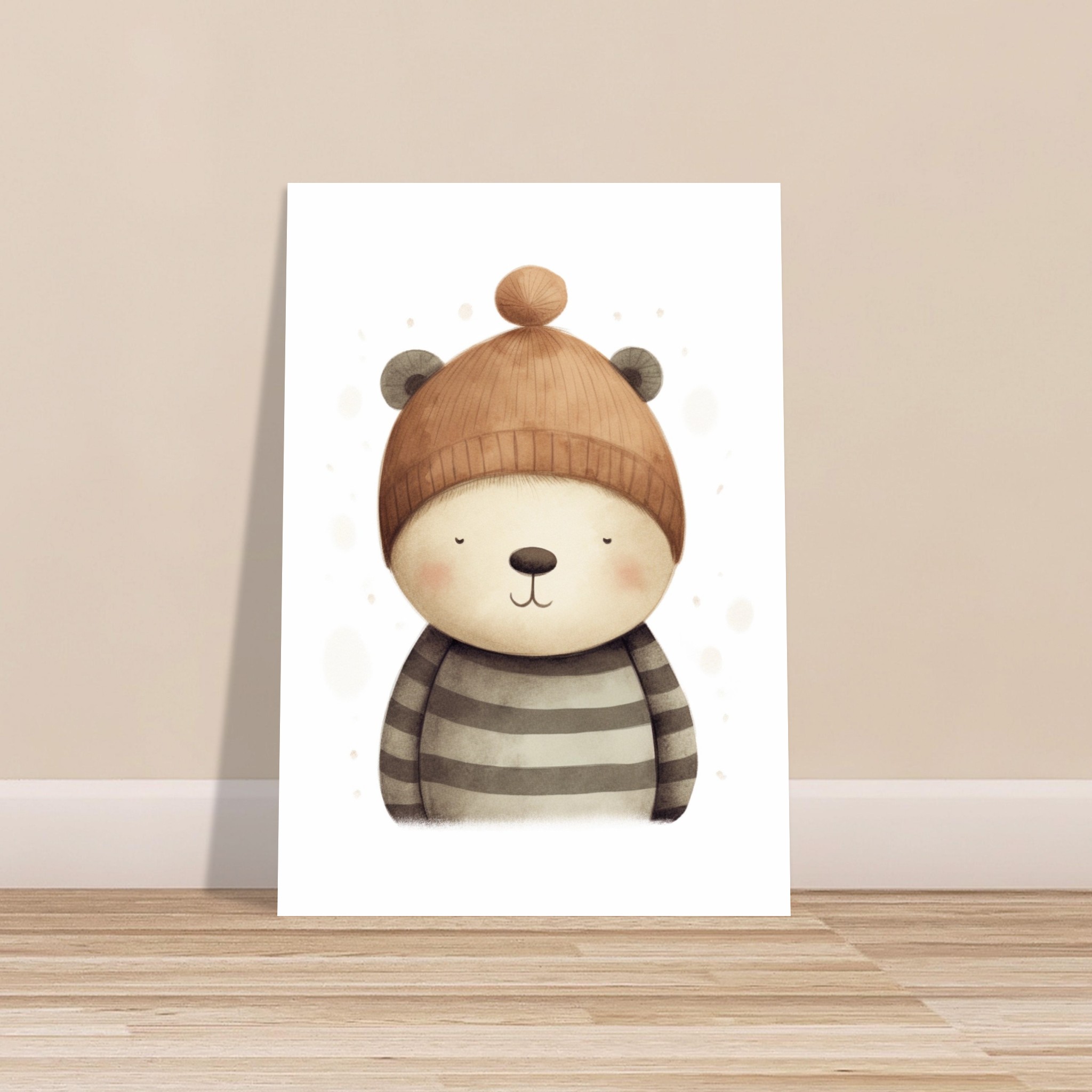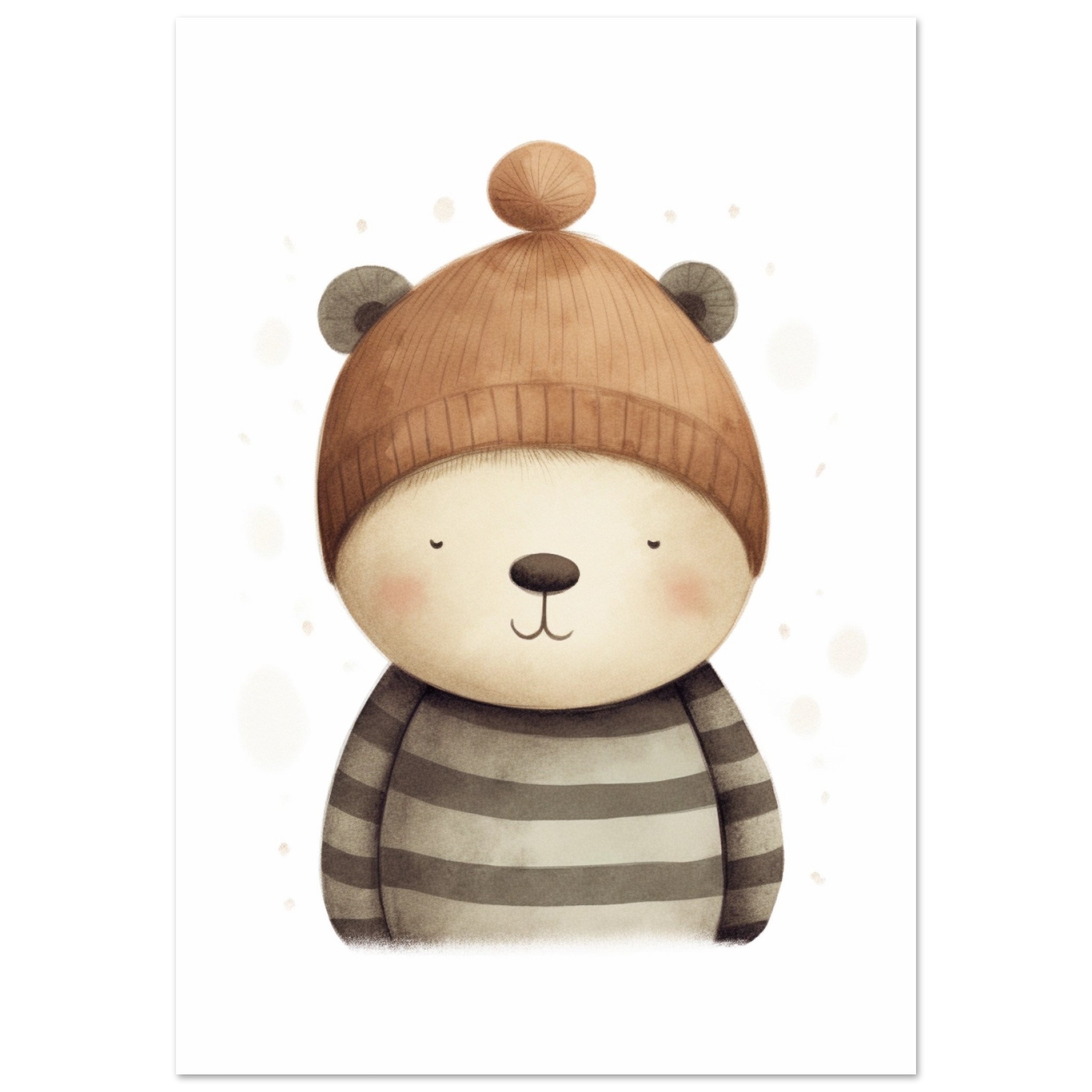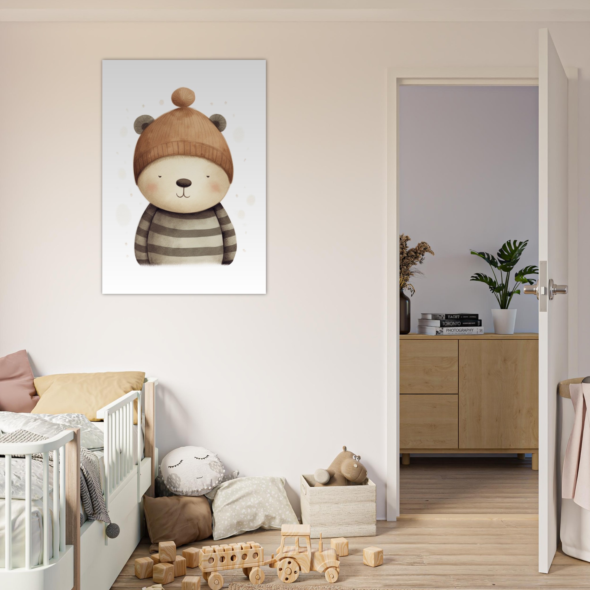 Breng een dosis schattigheid naar de kinderkamer met de ‘Beer met muts’ poster, verkrijgbaar via onze Kinderkamer Posters collectie. Deze lieve poster toont een vriendelijke beer met een warme muts op, klaar om de kamer van je kleintje op te vrolijken. Met zijn levendige kleuren en knusse uitstraling is deze poster perfect voor een speelse en gezellige sfeer in de kinderkamer. Of het nu boven de commode of als onderdeel van een galerijmuur is, de ‘Beer met muts’ poster voegt een vleugje vreugde toe aan elke hoek van de kamer.