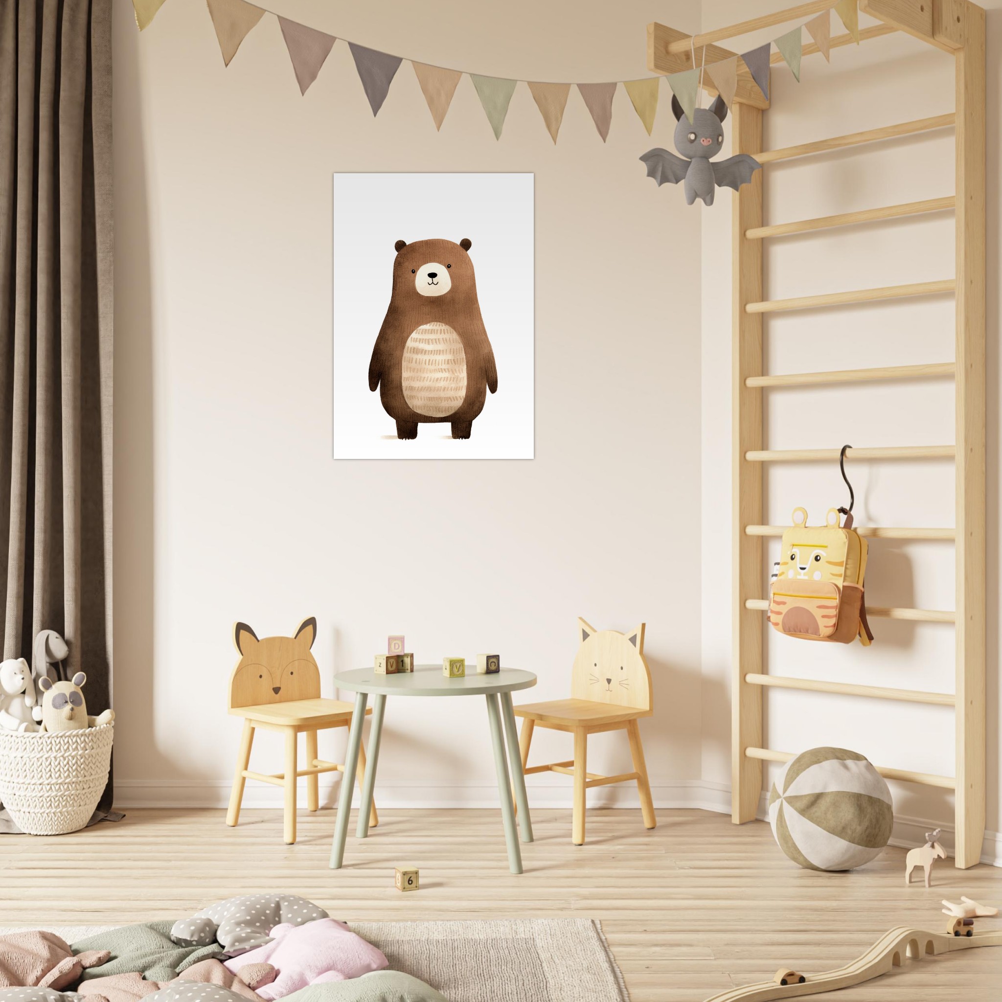 Voeg wat wilde charme toe aan de kinderkamer met de ‘Bruine beer staand’ poster, beschikbaar in onze uitgebreide collectie van Kinderkamer Posters. Deze poster toont een majestueuze bruine beer in al zijn glorie terwijl hij statig staat. Met zijn realistische details en warme uitstraling brengt deze poster de schoonheid van de natuur rechtstreeks naar de kinderkamer. Of het nu dient als educatieve decoratie of gewoon als een eerbetoon aan de prachtige dierenwereld, de ‘Bruine beer staand’ poster is een aanwinst voor elke kinderkamer.