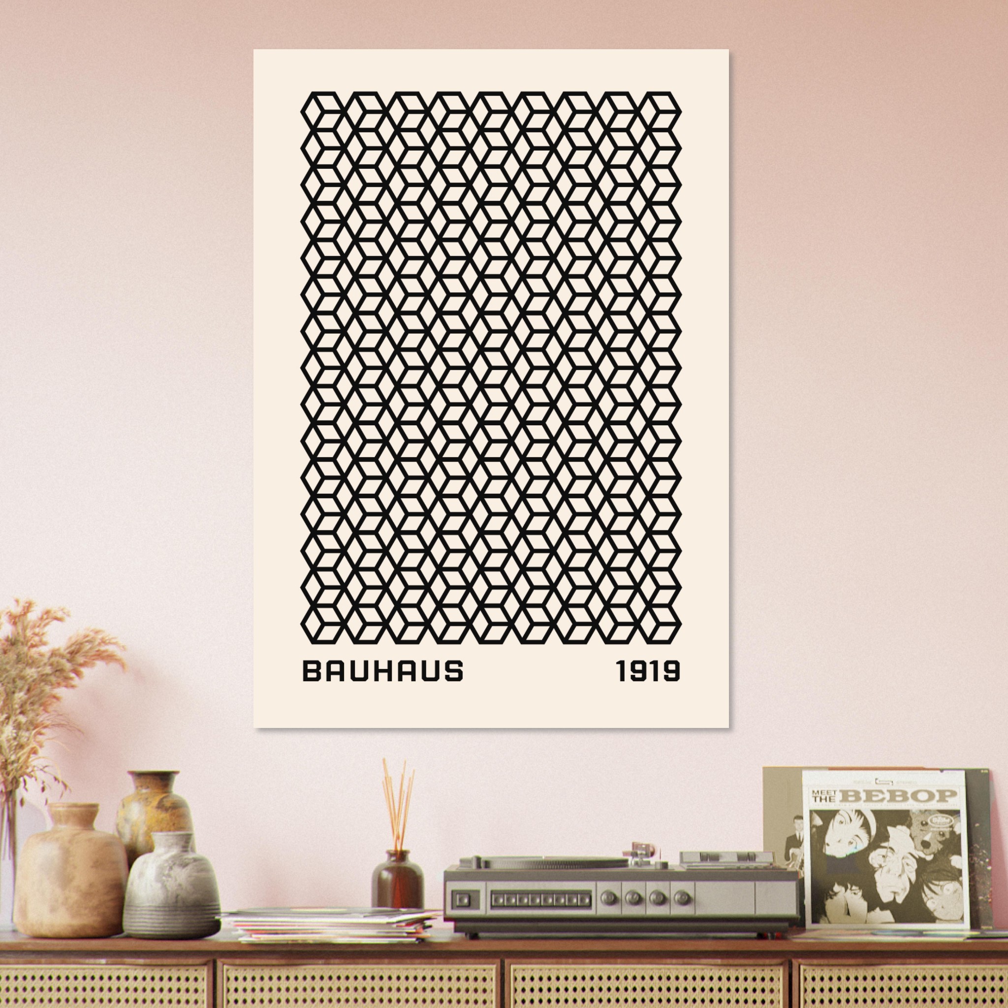 Duik in de historische diepte van de moderne kunst met ‘Bauhaus – 1919 Beehive’, een representatief stuk uit de Bauhaus collectie. Dit kunstwerk, dat de innovatieve geest van het Bauhaus in zijn oprichtingsjaar symboliseert, combineert abstracte vormen met een industrieel gevoel. De ‘1919 Beehive’ reflecteert de revolutionaire benadering van design en kunst die de Bauhaus-beweging kenmerkte. Met zijn complexe gelaagdheid en subtiele kleurgebruik is deze poster niet alleen een kunstwerk, maar ook een stukje geschiedenis, perfect voor iedereen die interesse heeft in de invloedrijke Bauhaus-esthetiek.