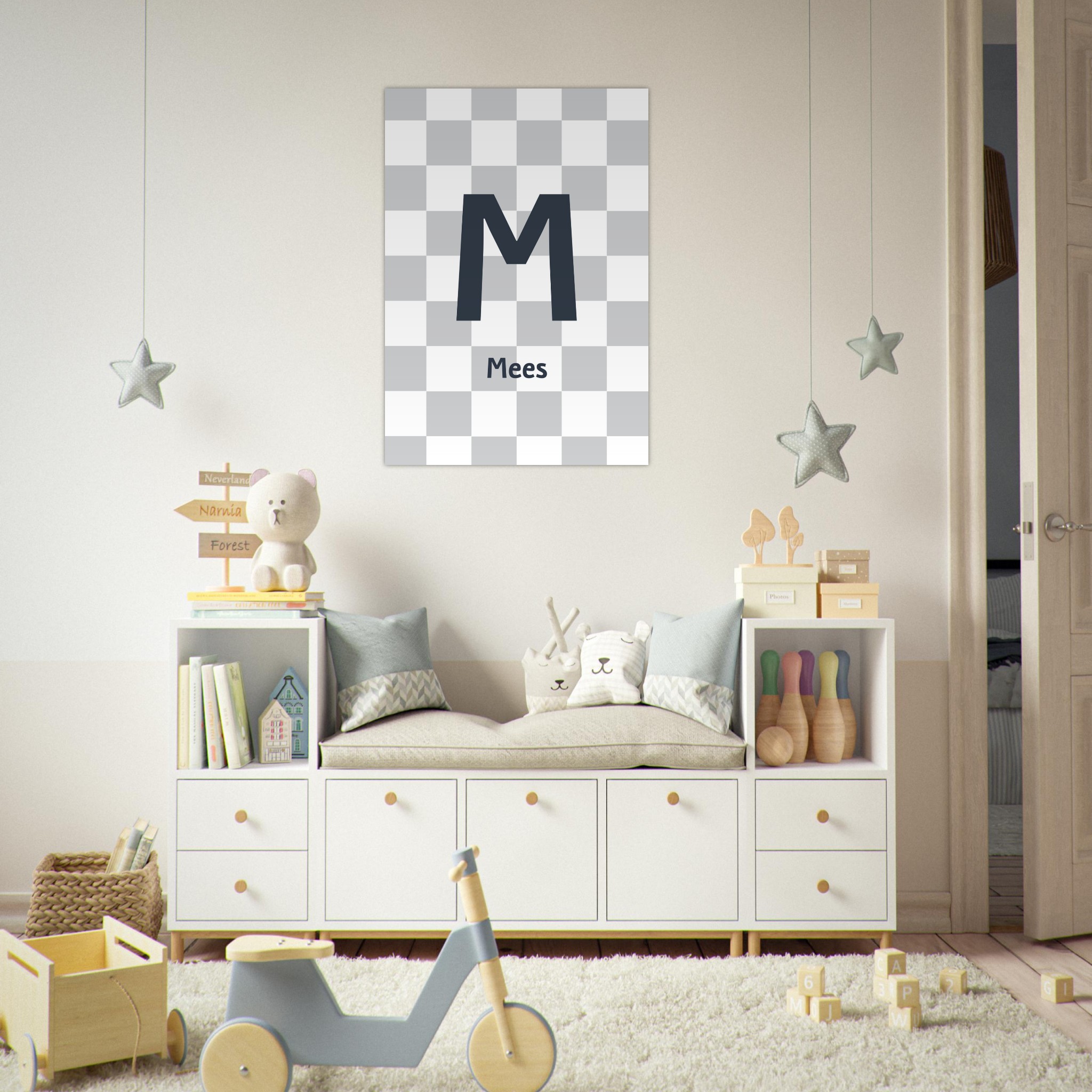 Voeg een stoere touch toe aan elke kinderkamer met deze ‘Kindernaam Mees’ poster. De poster, met een opvallende weergave van de naam Mees, heeft een geblokte lichtgrijze achtergrond die zowel neutraal als stijlvol is. Deze eenvoudige en toch krachtige ontwerp maakt het een perfecte aanvulling op iedere kinderkamer, ongeacht de inrichting of thema. Het is een leuke en persoonlijke manier om de ruimte van je kind een uniek en stoer karakter te geven.