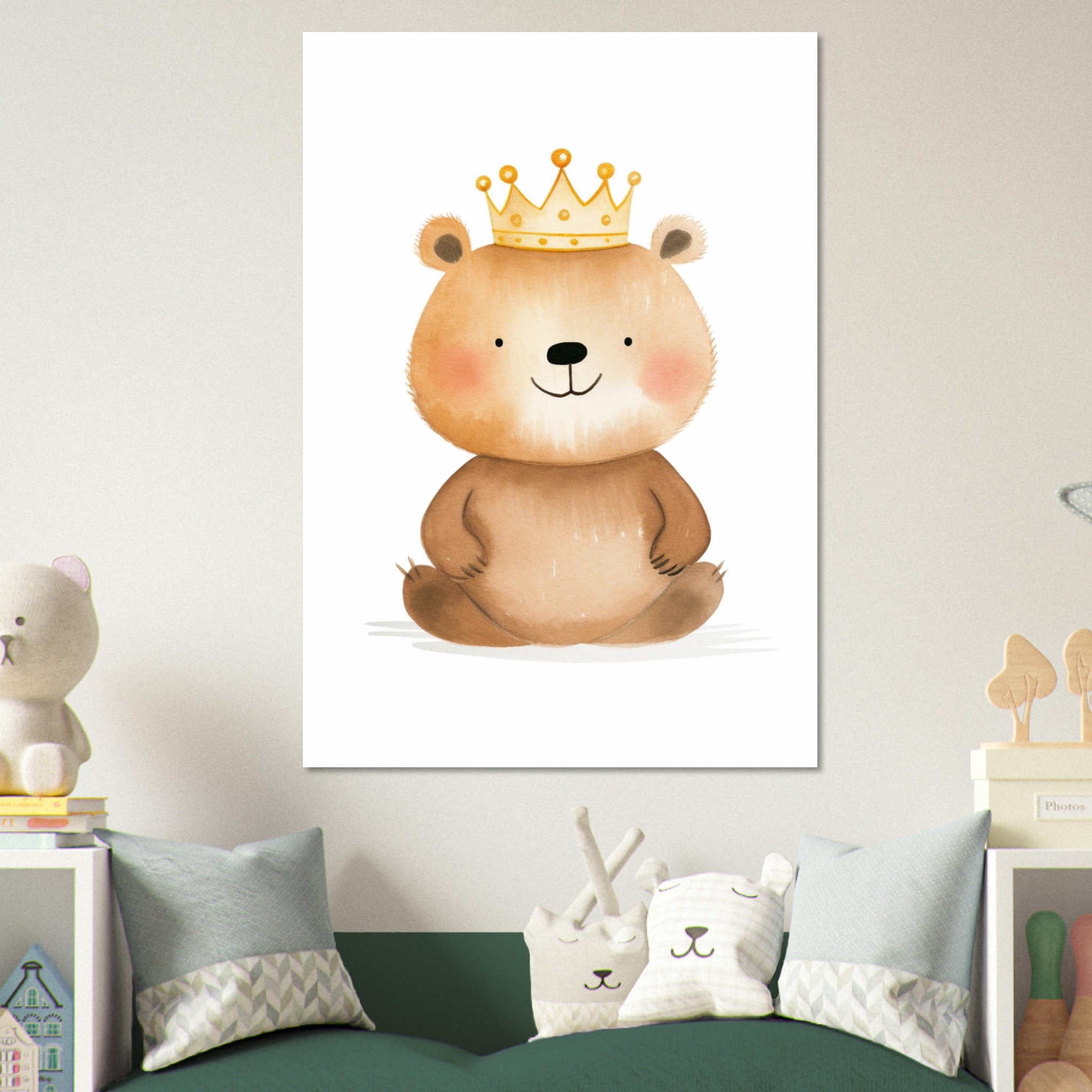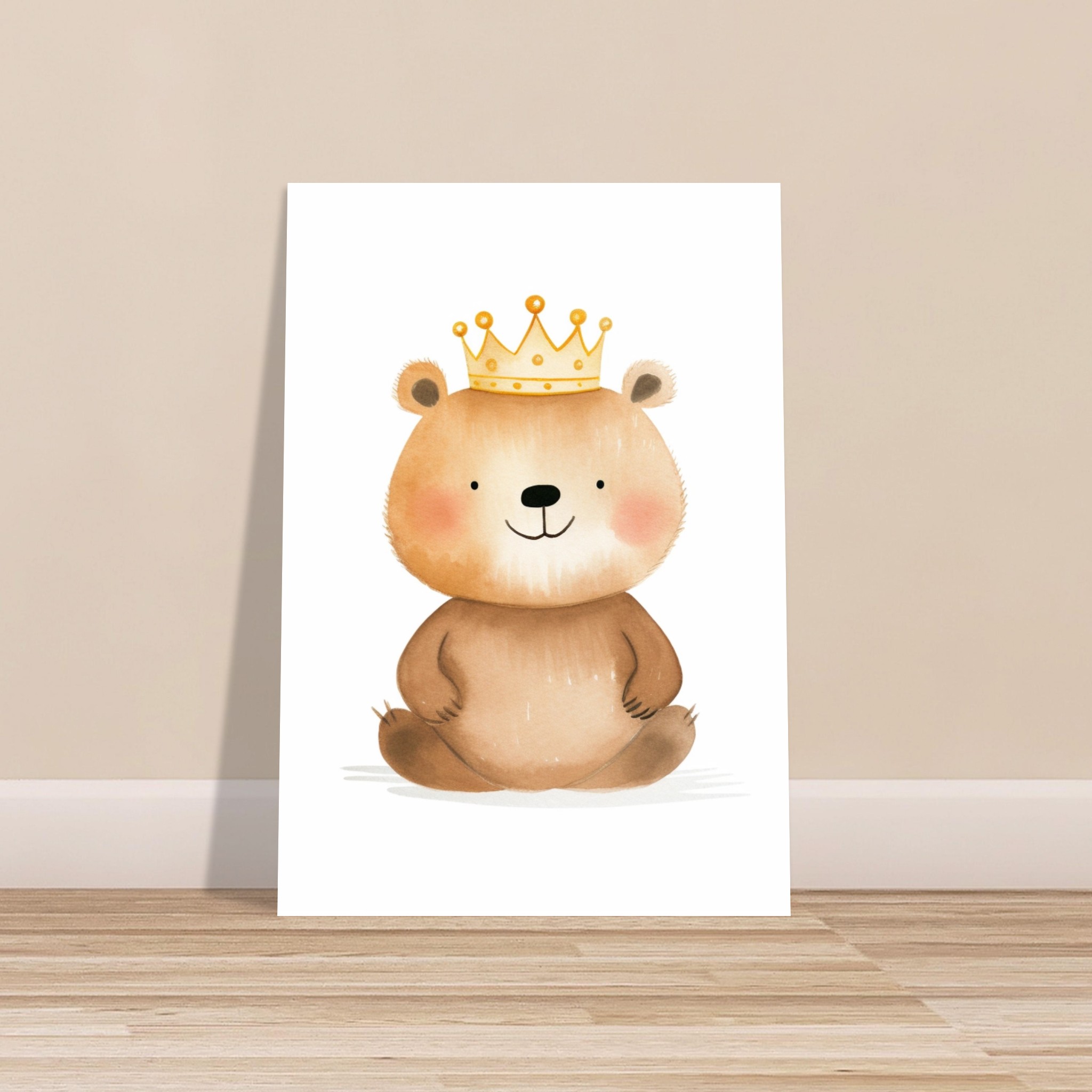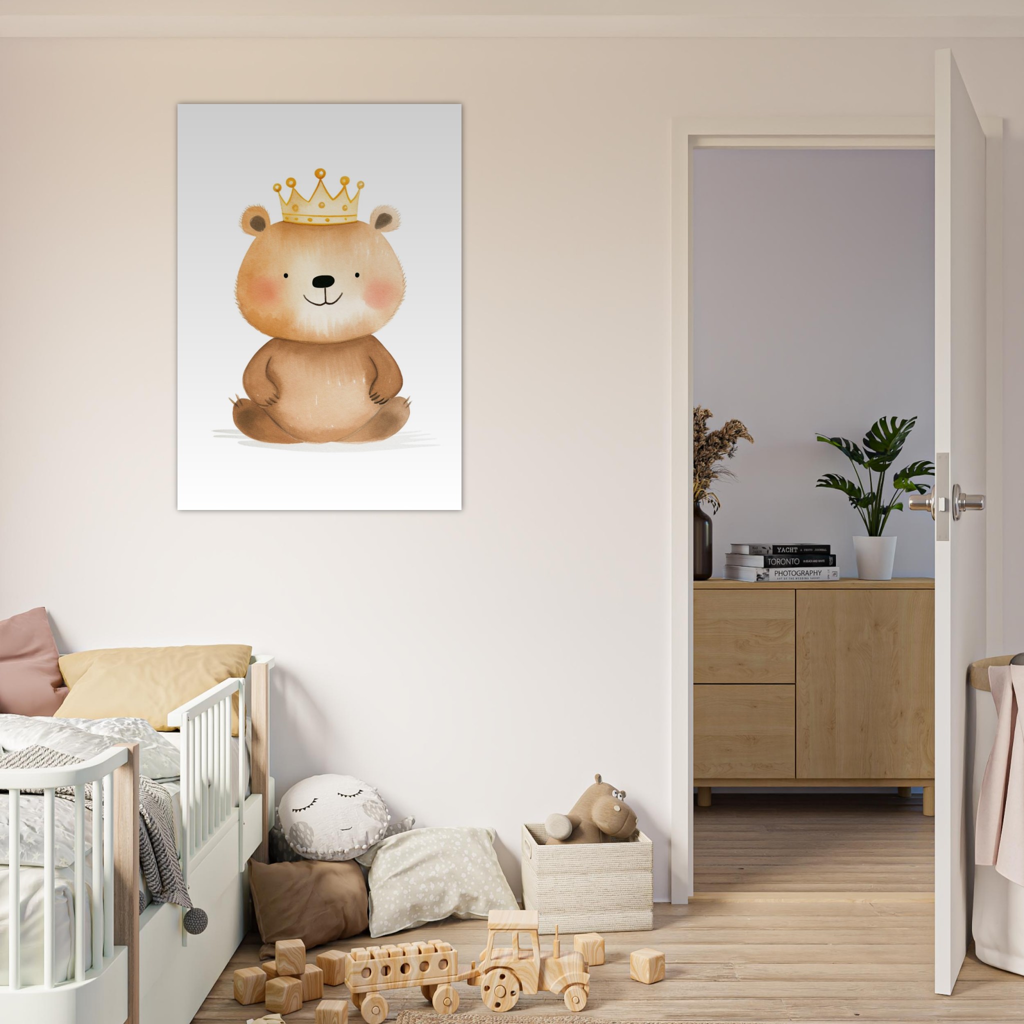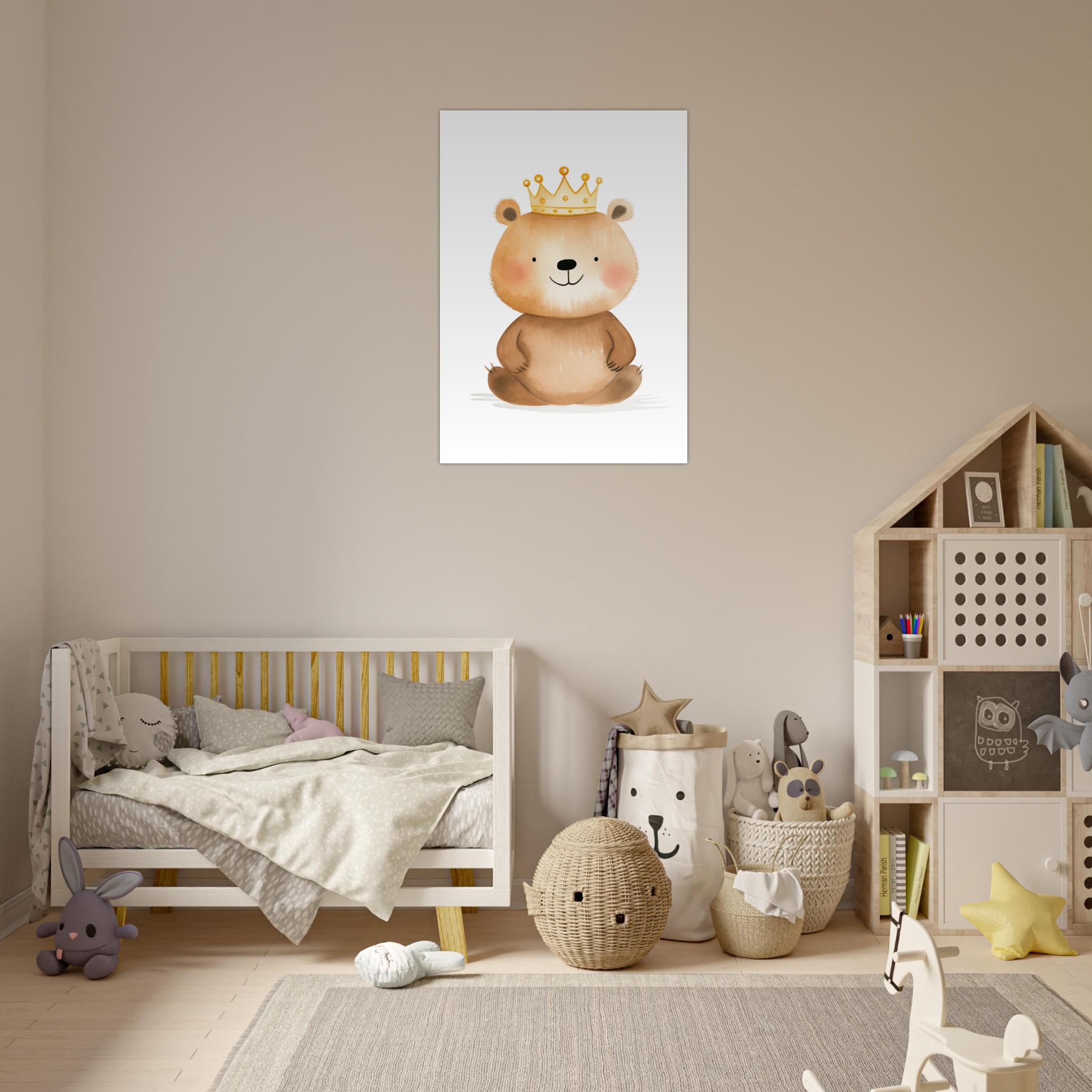 Versier de kinderkamer met het schattige ‘Klein Beertje met Kroon’ poster. Dit lieve beertje draagt een koninklijke kroon en voegt een vleugje magie toe aan de kamer van je kleintje. Laat hun verbeelding de vrije loop terwijl ze zich voorstellen dat ze de koning of koningin van hun eigen sprookjesland zijn. Ontdek meer betoverende posters voor de kinderkamer in onze collectie van Kinderkamer Posters. Maak van de slaapkamer van je kind een betoverende en fantasierijke plek met deze schattige poster.
