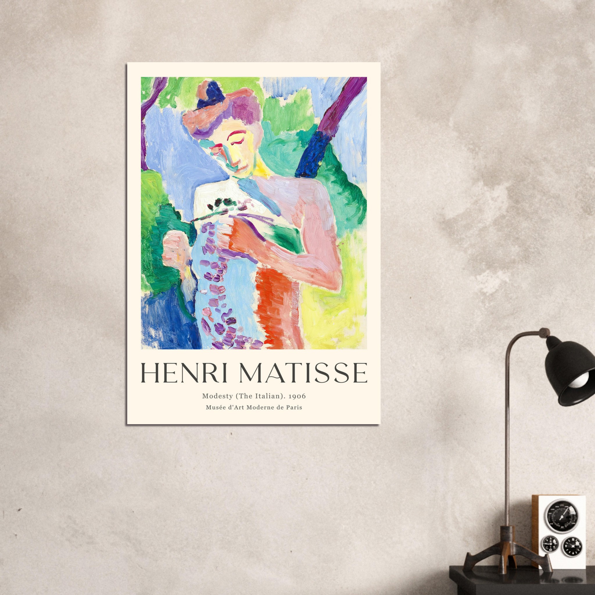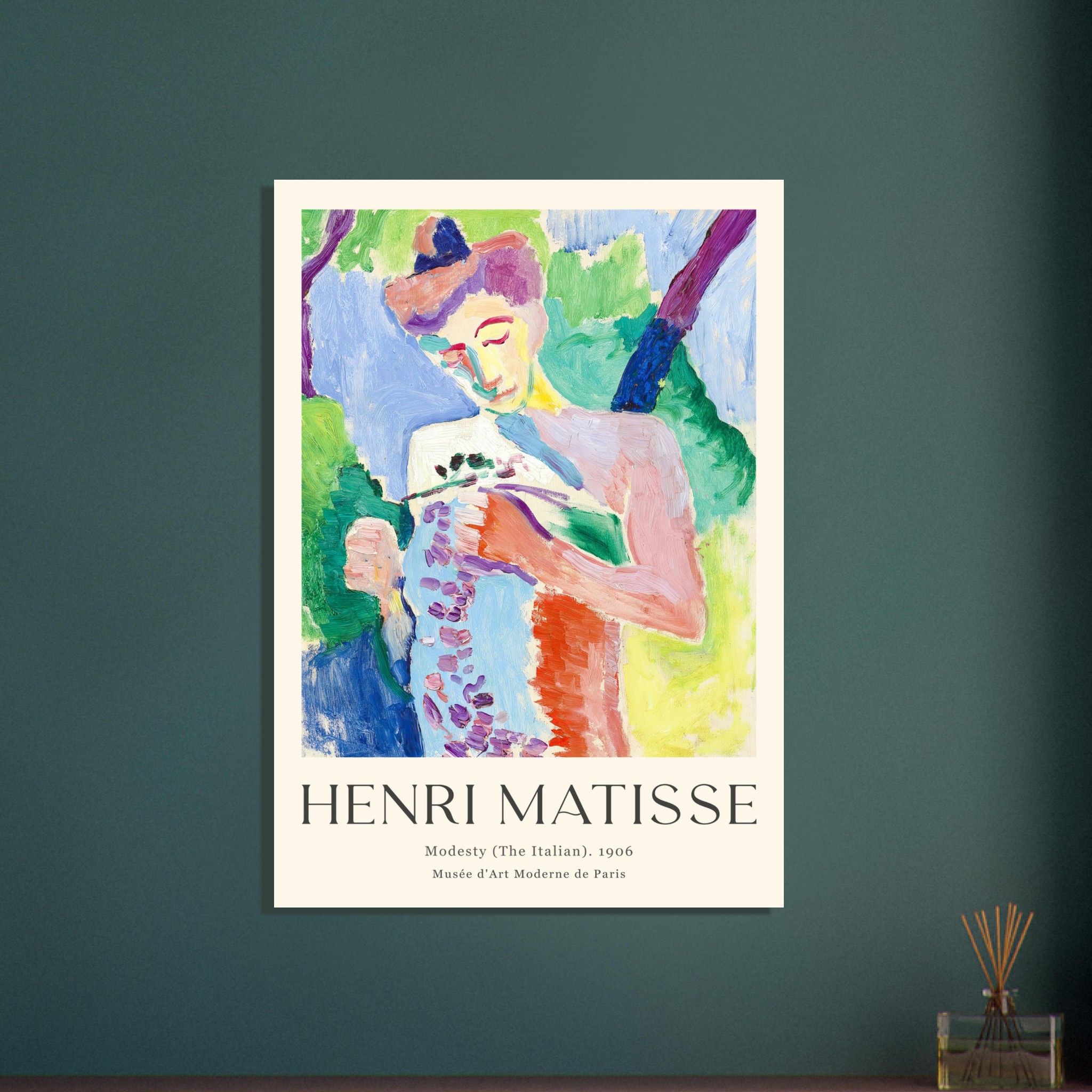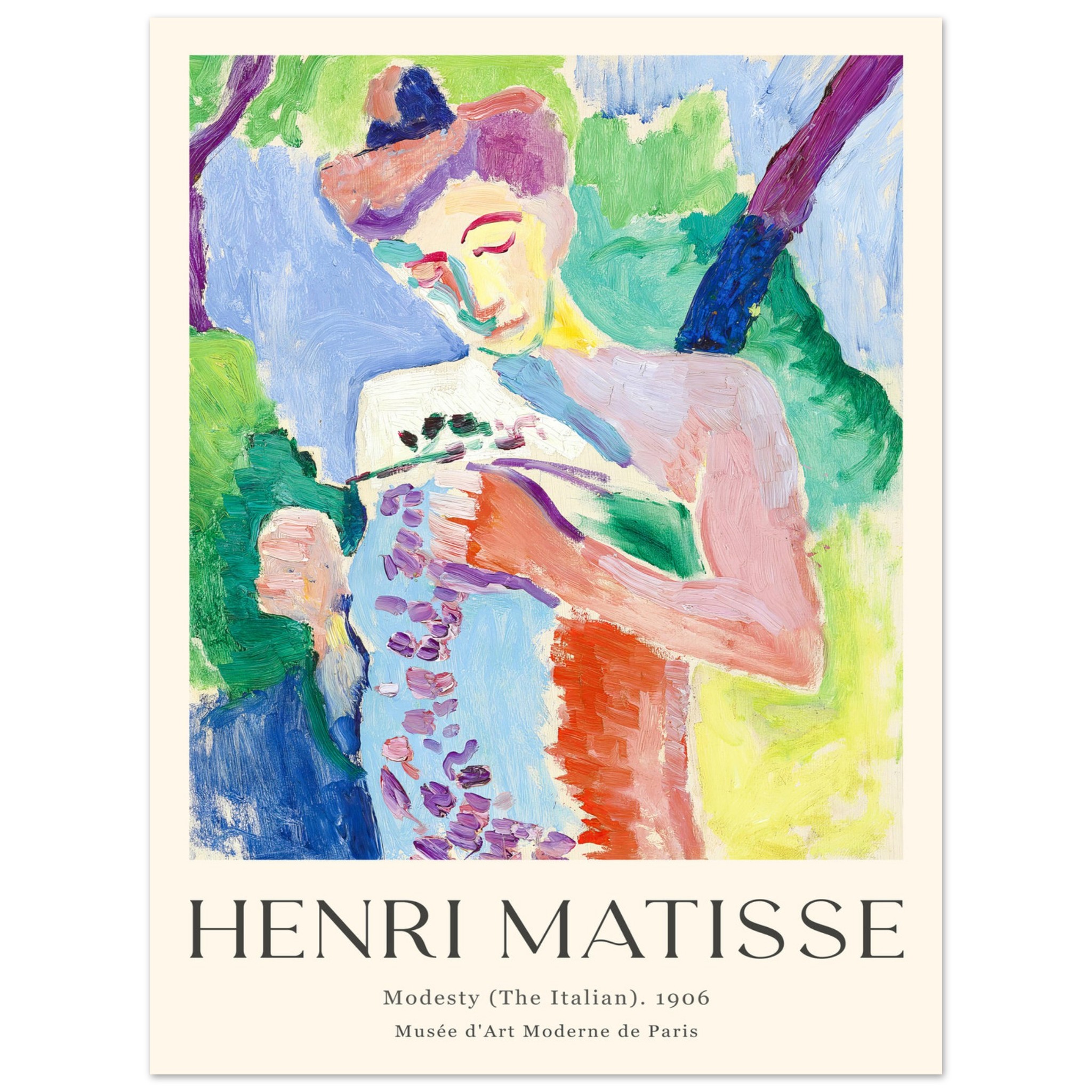 Verken de diepte van expressie en subtiele schoonheid in ‘Modesty (The Italian) – 1906’, een intrigerend portret van Matisse. Dit kunstwerk, dat een moment van ingetogen elegantie vastlegt, toont Matisse’s vaardigheid in het portretteren van menselijke emotie en karakter. De zachte kleuren en doordachte compositie dragen bij aan het gevoel van intimiteit en reflectie. Dit stuk is ideaal voor liefhebbers van portretkunst en voor diegenen die hun ruimte willen verrijken met een stukje van Matisse’s artistieke inzicht en menselijke begrip.