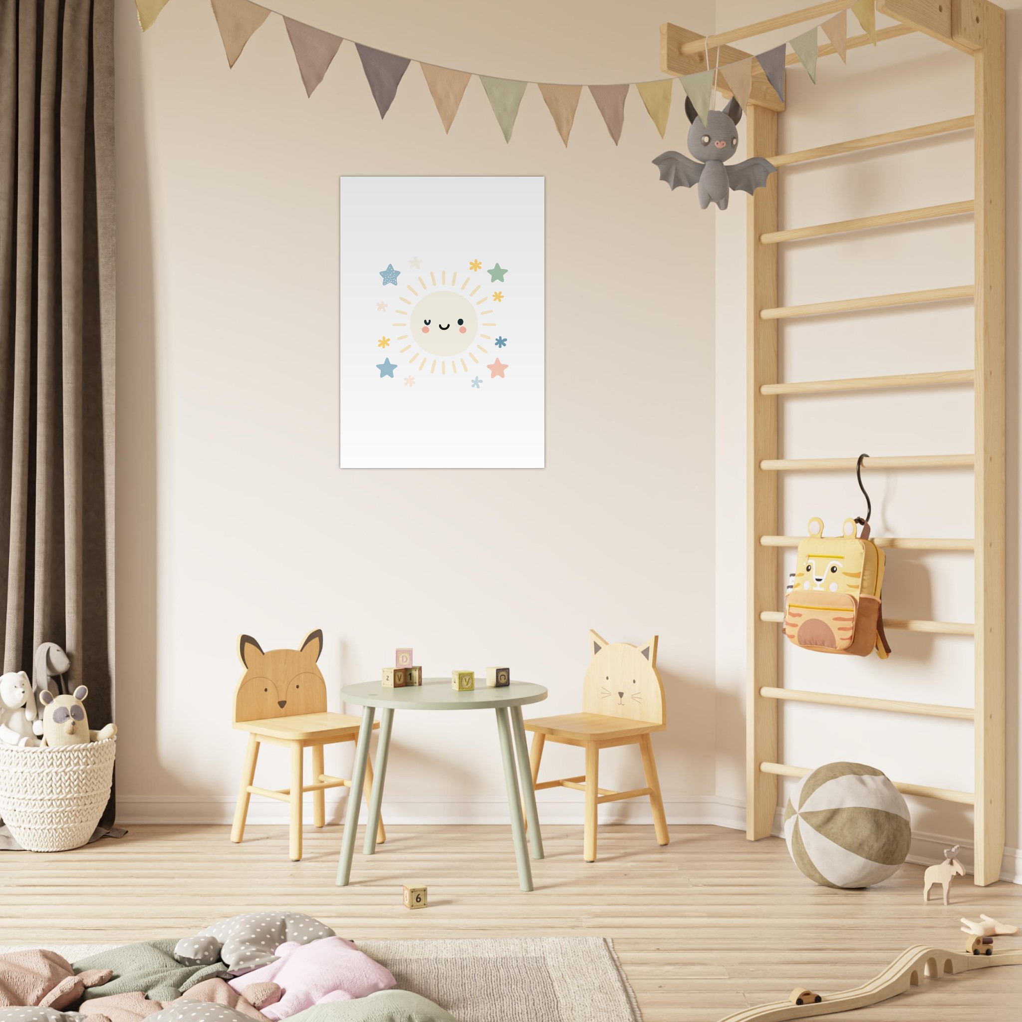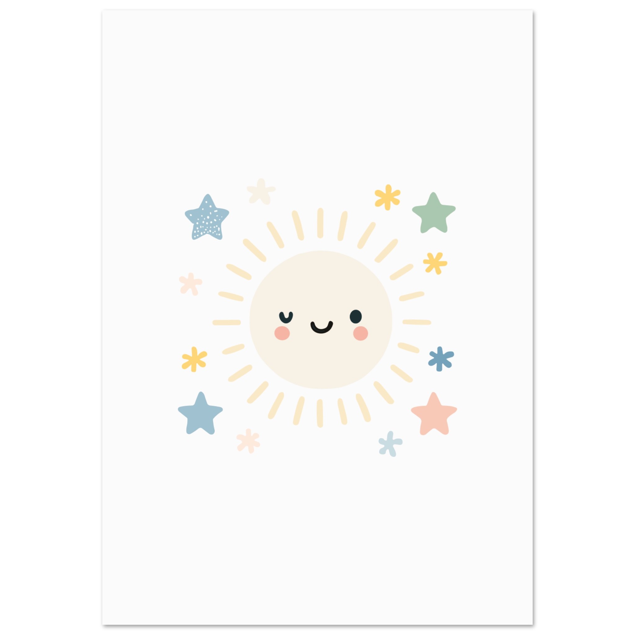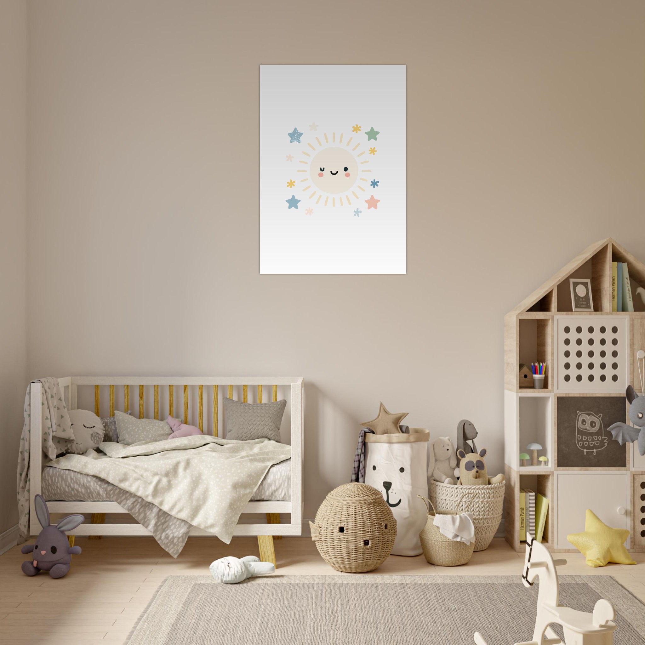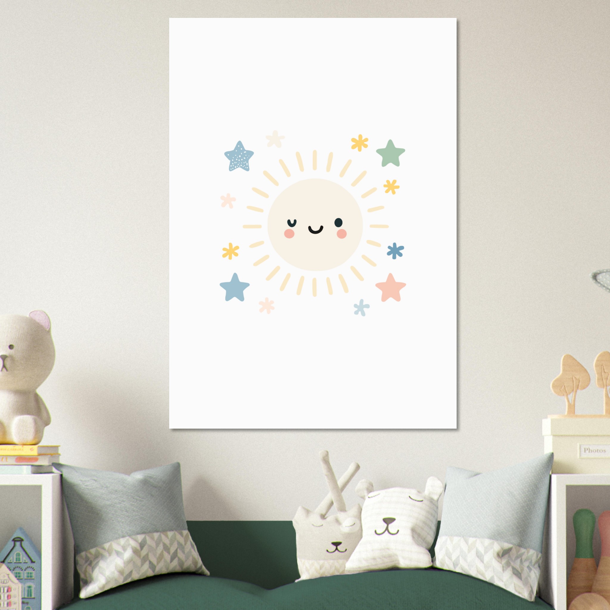 “Pastel Sunshine” – breng de warmte en vreugde van een zonnige dag in de kinderkamer met deze prachtige pastelkleurige poster. De zachte kleuren en het vrolijke ontwerp zullen een glimlach toveren op het gezicht van je kleintje. Ontdek meer stralende Kinderkamer Posters om de kamer op te fleuren met deze zonnige sfeer.