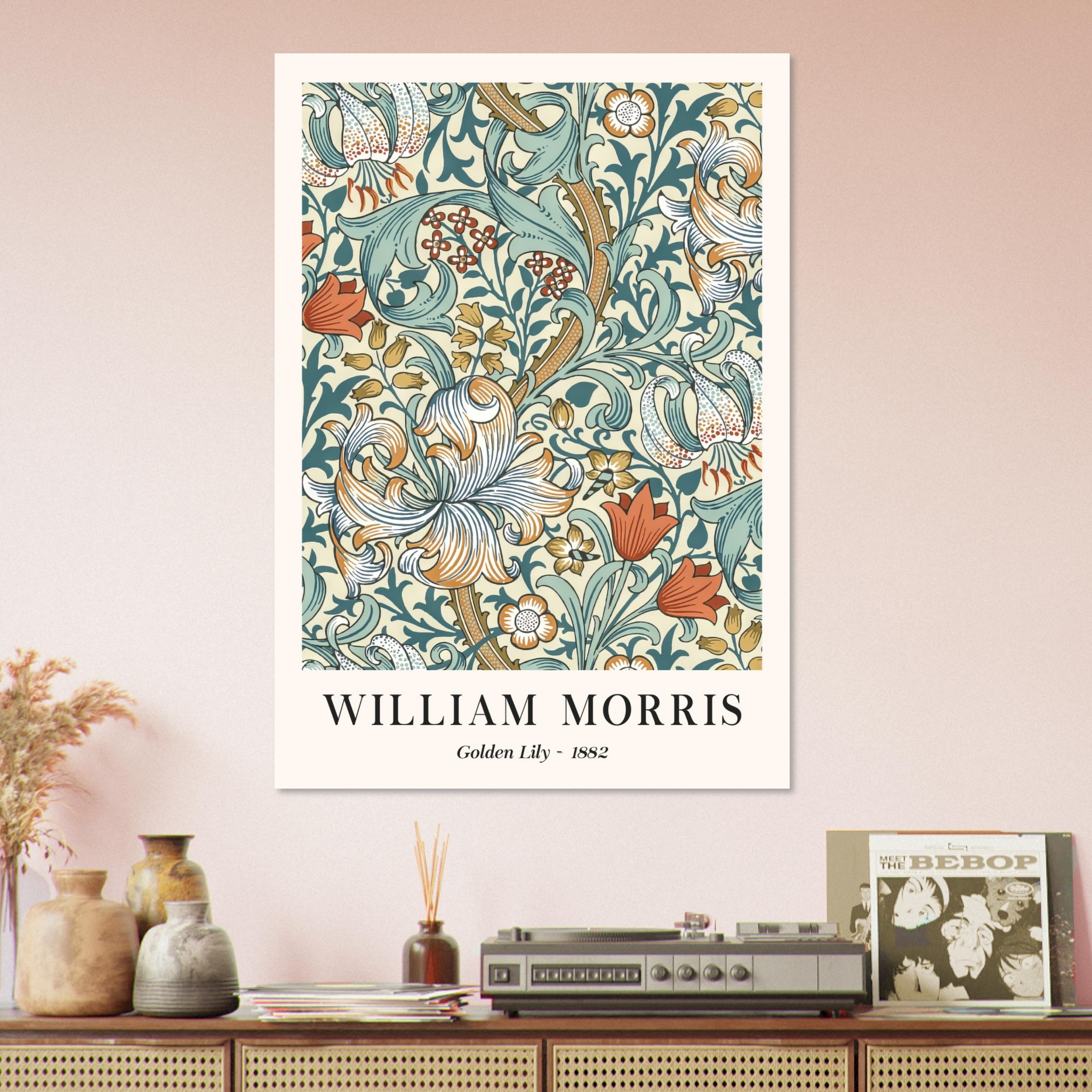 Bewonder de elegante en tijdloze uitstraling van ‘Golden Lilly II – 1882’, een prachtig ontwerp van William Morris. Dit kunstwerk, gekenmerkt door sierlijke leliepatronen tegen een rijke, gouden achtergrond, toont Morris’ expertise in het samensmelten van natuurlijke motieven met een luxueuze esthetiek. De verfijnde compositie en het warme kleurenschema maken ‘Golden Lilly’ tot een opvallende en stijlvolle toevoeging aan elk interieur. Het is een ideale keuze voor liefhebbers van de Arts and Crafts-beweging en voor hen die een vleugje klassieke schoonheid en weelde willen toevoegen aan hun leefomgeving.