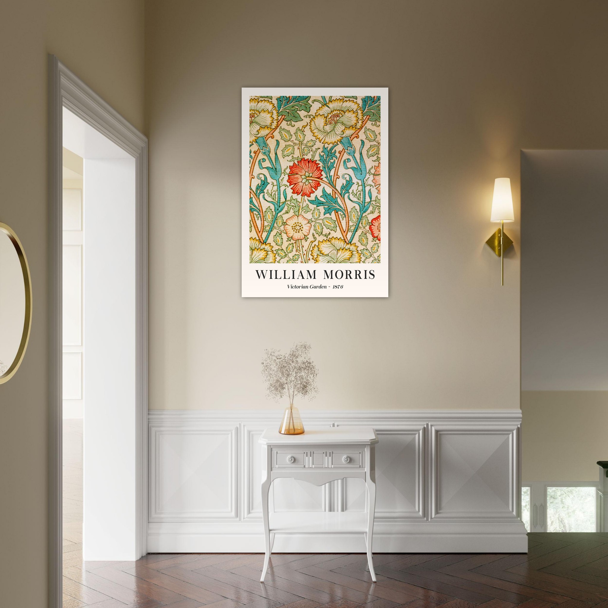 Stap in een wereld van Victoriaanse grandeur met ‘Victorian Garden – 1876’ van William Morris. Dit kunstwerk, dat een weelderige tuin uit het hoogtepunt van het Victoriaanse tijdperk uitbeeldt, is een rijke tapestry van kleur en leven. Elke penseelstreek en elk kleurnuance weerspiegelt de weelde en diversiteit van een klassieke Engelse tuin, met een scala aan bloemen en planten die zich in harmonieuze patronen ontvouwen. Deze poster is een must-have voor iedereen die zijn huis wil sieren met een stukje historische elegantie en botanische pracht. ‘Victorian Garden – 1876’ nodigt je uit om te verdwalen in zijn tijdloze schoonheid, en biedt een vredige ontsnapping aan het hectische moderne leven.