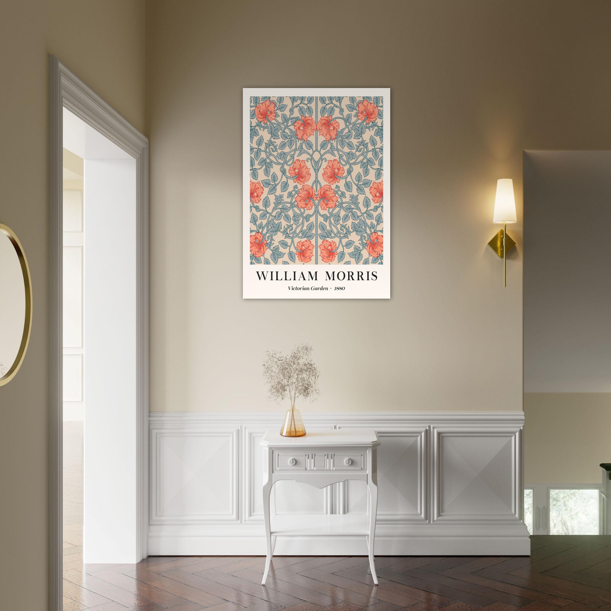 Stap terug in de tijd met ‘Victorian Garden – 1880′ van William Morris, een poster die de pracht en praal van een 19e-eeuwse Engelse tuin tot leven brengt. Dit kunstwerk, rijk aan detail en kleur, weerspiegelt de romantische en weelderige stijl van het Victoriaanse tijdperk. Met zijn sierlijke bloempatronen en levendige groentinten, is deze poster een perfecte weergave van Morris’ talent voor het ontwerpen van natuurlijke motieven. Ideaal voor liefhebbers van historische kunst en tuinen, voegt ‘Victorian Garden – 1880’ een vleugje klassieke elegantie en tijdloze charme toe aan elk interieur.