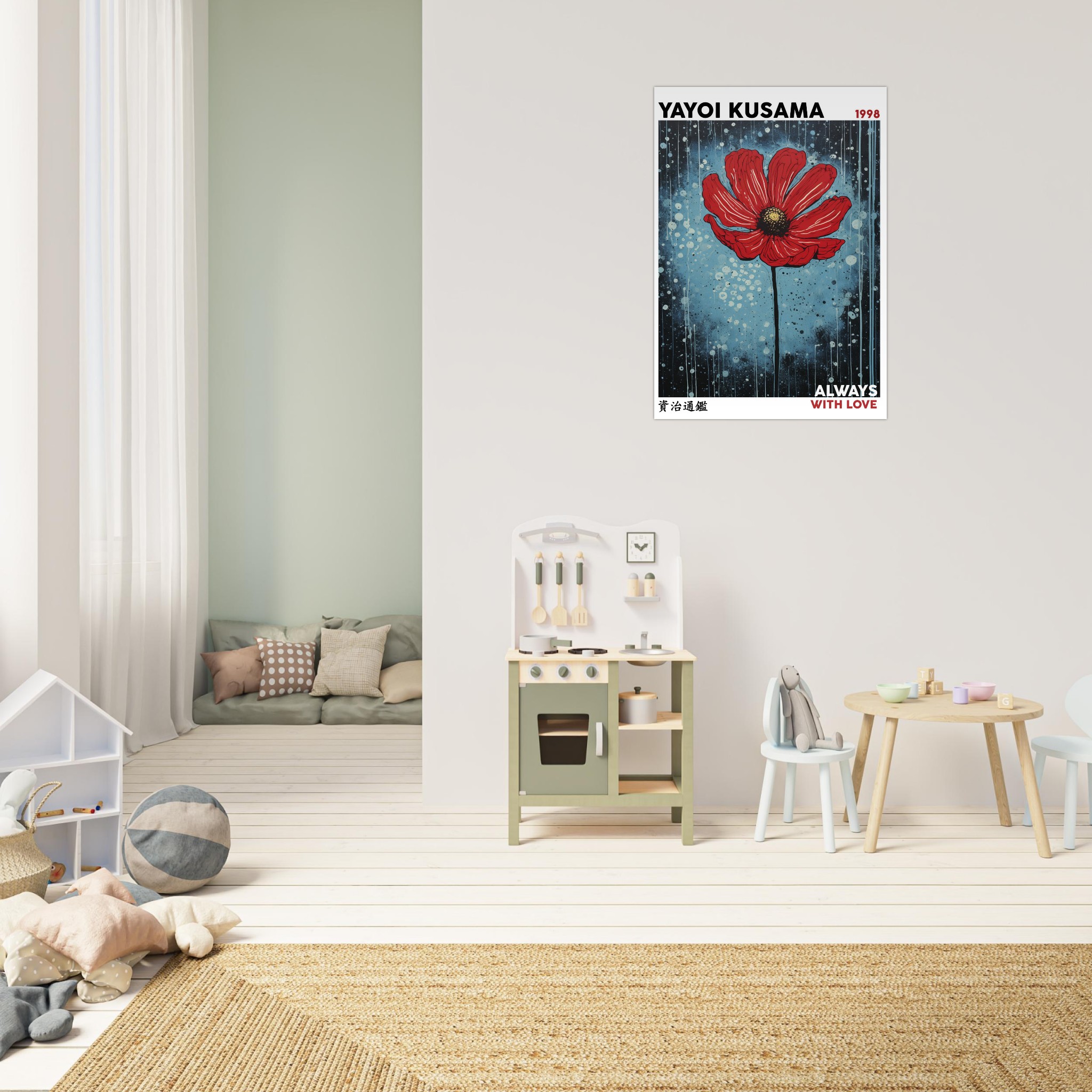 Voel de warmte en genegenheid van ‘Always with Love’, een hartverwarmend kunstwerk van Yayoi Kusama. Dit kunstwerk, dat liefde en vreugde uitstraalt, is een prachtige uiting van Kusama’s creatieve geest. Met haar kenmerkende polkadots en levendige kleuren, brengt dit stuk een boodschap van eeuwige liefde en positiviteit. ‘Always with Love’ is een inspirerende en kleurrijke toevoeging aan elke ruimte, perfect voor iedereen die verlangt naar een dagelijkse dosis liefde en een herinnering aan de blijvende kracht van affectie.