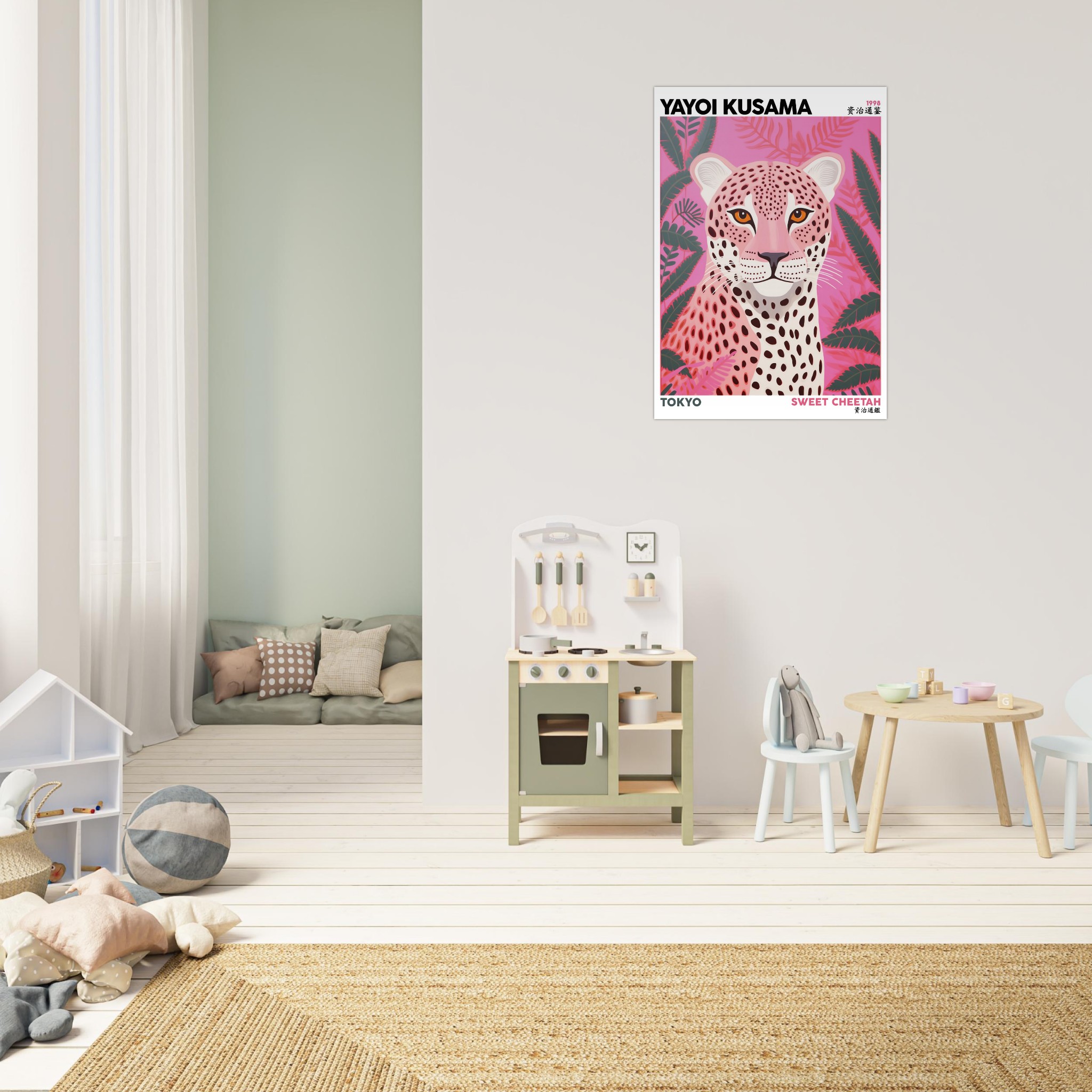 Ontdek de speelse en kleurrijke kant van de kunstwereld met ‘Sweet Cheetah’ van Yayoi Kusama. Deze poster, die een unieke combinatie van dierenrijk en Kusama’s kenmerkende stippenpatronen toont, is een vrolijke en boeiende toevoeging aan elke collectie. ‘Sweet Cheetah’ belichaamt Kusama’s creatieve geest en haar vermogen om traditionele beelden te transformeren in iets buitengewoons. Met zijn levendige kleuren en eigenzinnige ontwerp is deze poster een perfecte weerspiegeling van Kusama’s artistieke visie, ideaal voor iedereen die op zoek is naar een speels, doch kunstzinnig element in hun interieur.