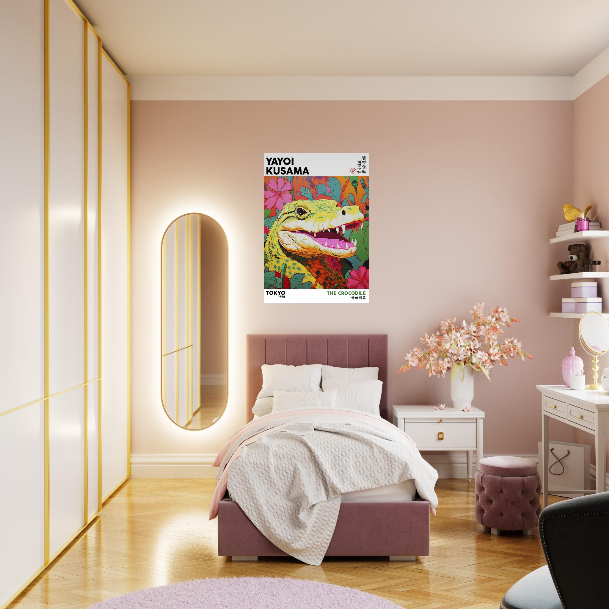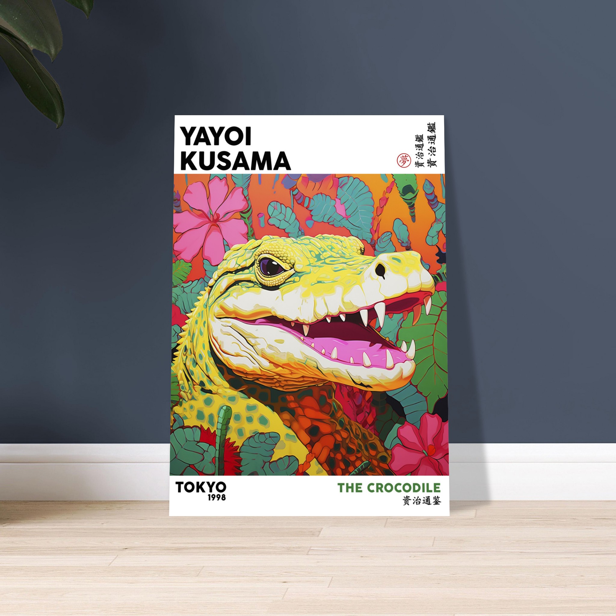 Ontdek de betoverende en onconventionele wereld van Yayoi Kusama met ‘The Crocodile’. Dit kunstwerk, dat de essentie van Kusama’s unieke visie en artistieke durf toont, portretteert een krokodil op een manier die alleen Kusama kan. De levendige kleuren, gecombineerd met haar kenmerkende polkadots en abstracte vormen, creëren een beeld dat zowel intrigerend als speels is. ‘The Crocodile’ is een uitnodiging om de wereld door Kusama’s ogen te zien, waar de natuurlijke wereld en de fantasie samensmelten in een kleurrijk en dynamisch tafereel.